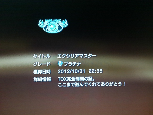 TOX2発売前日にしてやっと、TOXのトロフィーをコンプしたよvvv